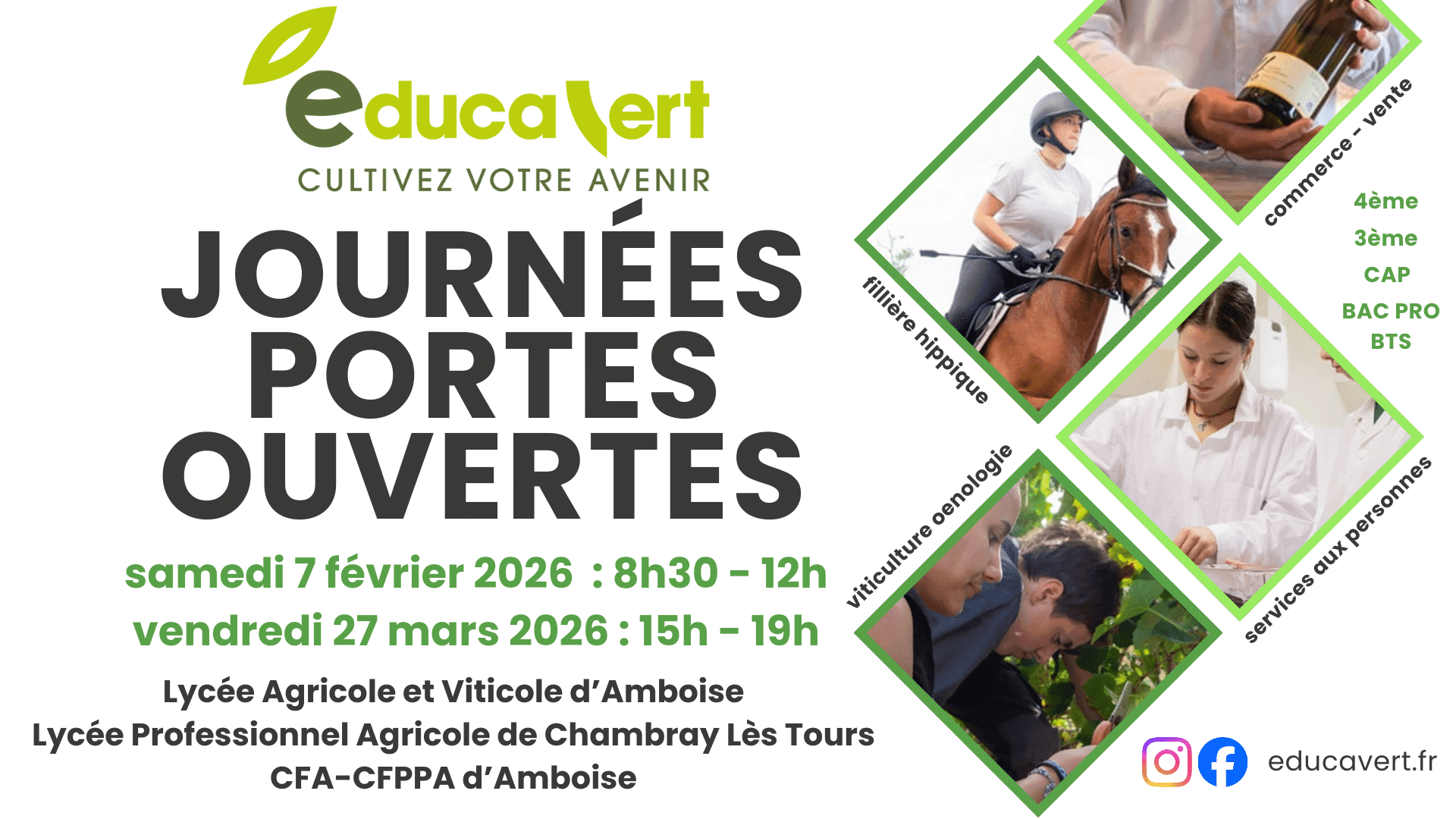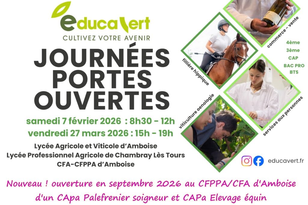 Bienvenue chez Educavert, lycées professionnels agricoles et Centre de formation à Amboise - Chambray-lès-Tours en Indre-et-Loire (37).
